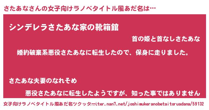 | 男性向けラノベタイトル風あだ名 | 『サタアナスレイヤー』 |