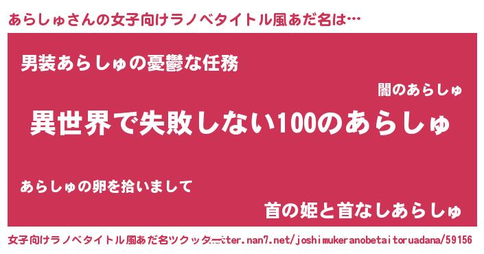 | 男性向けラノベタイトル風あだ名 | 『あらしゅという概念が存在しない退屈な世界 』 |