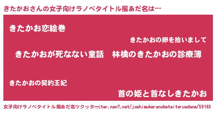 | 男性向けラノベタイトル風あだ名 | 『魔弾の王ときたかお』 |