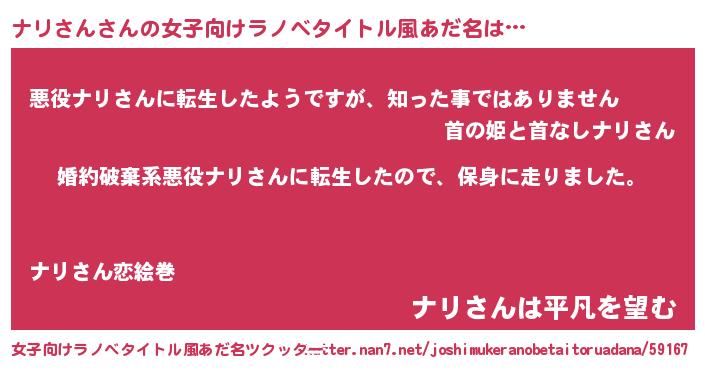 | 男性向けラノベタイトル風あだ名 | 『ナリサンスレイヤー』 |