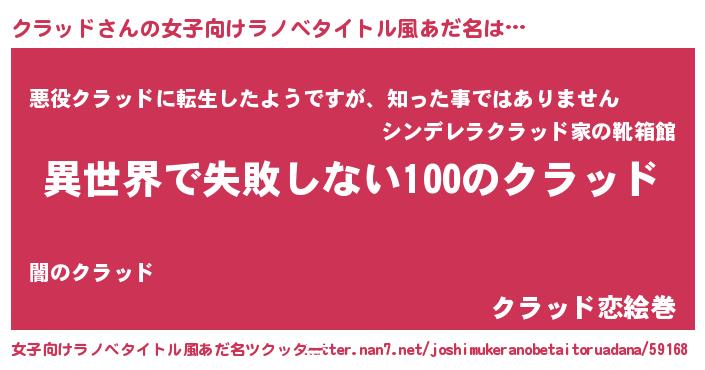 | 胡散臭い通販商品みたいなあだ名 | 『絶対に幸福をもたらす水素水…その名も「クラッド」』 |