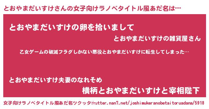 | 意味不明あだ名 | 『住所不定無職とおやまだいすけ(56歳)』 |