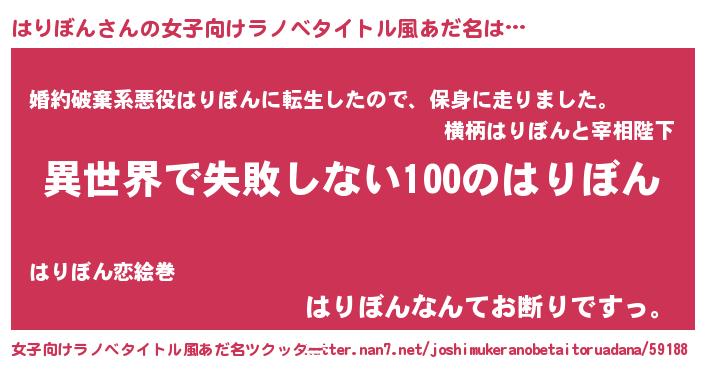 | 男性向けラノベタイトル風あだ名 | 『はりぼんという概念が存在しない退屈な世界 』 |
