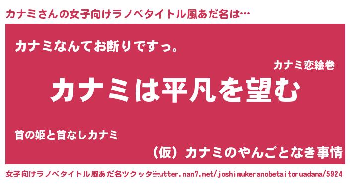 | ヒーロー風カッコイイあだ名 | 『黄金騎士カナ』『超時空戦士カナミ』 |