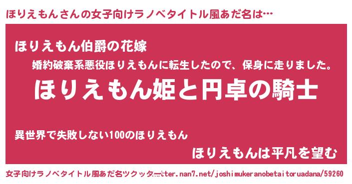 | 男性向けラノベタイトル風あだ名 | 『ホリエモンアートオンライン』 |