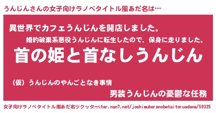 | ヘコむあだ名 | 『うんじん(苦笑)』『うんにゅー』 |