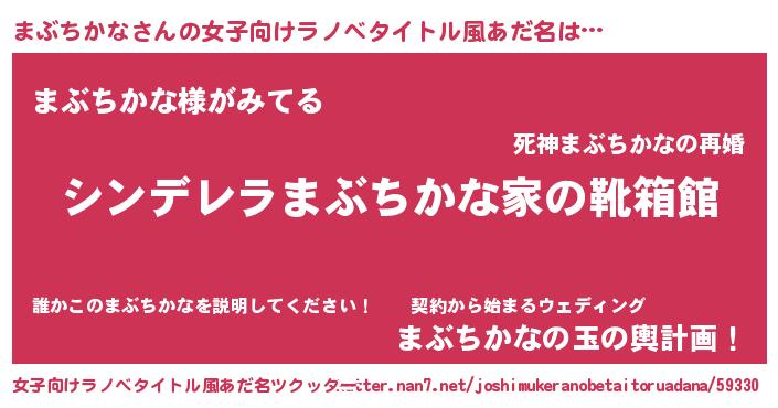 | 胡散臭い通販商品みたいなあだ名 | 『信頼と実績のサプリメント…その名も「まぶちかな」』 |