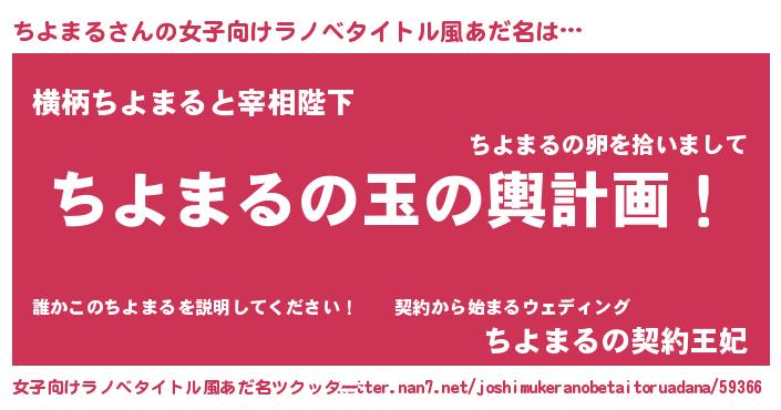 | 男性向けラノベタイトル風あだ名 | 『転生したらちよまるだった件』 |