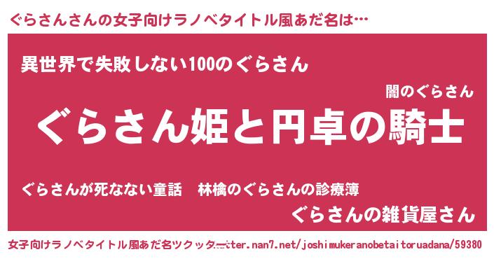 | 意味不明あだ名 | 『ペロリンぐらさん』『永久保存ぐらさん』 |