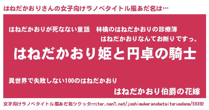 | 胡散臭い通販商品みたいなあだ名 | 『モテモテ間違いなし水晶球…その名も「はねだかおり」』 |