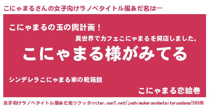 | ヘコむあだ名 | 『こにっぺ』『こにゃまる(苦笑)』 |