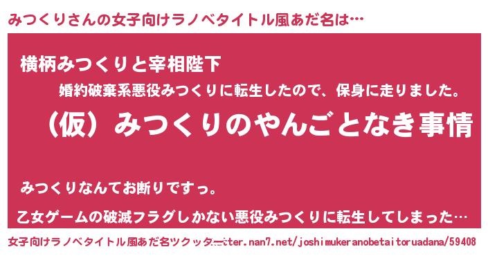 | 男性向けラノベタイトル風あだ名 | 『みつくりの憂鬱』『ミツクリスレイヤー』 |