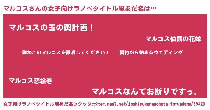 | ヒーロー風カッコイイあだ名 | 『スーパーマルコス』『究極戦士マルコス』 |