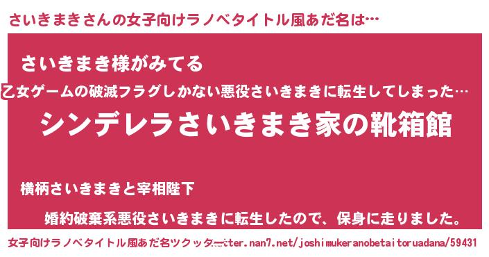 | 男性向けラノベタイトル風あだ名 | 『冴えないさいきまきの育てかた』 |