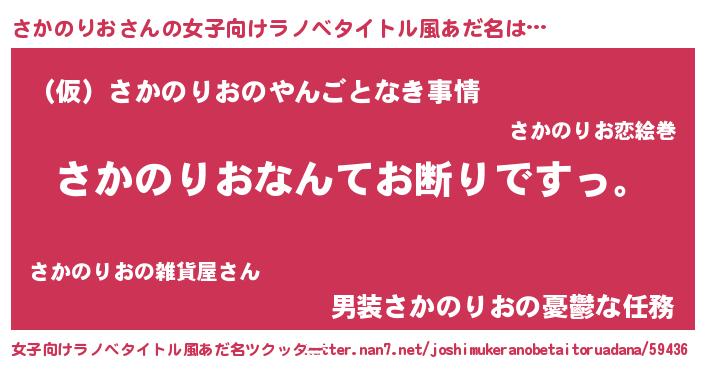 | 肩書あだ名 | 『さかのりお閣下』『さかのりお社長』 |