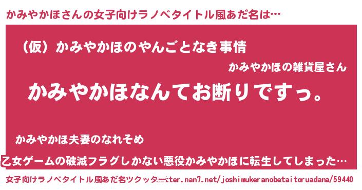 | 男性向けラノベタイトル風あだ名 | 『魔法科高校のかみやかほ』 |