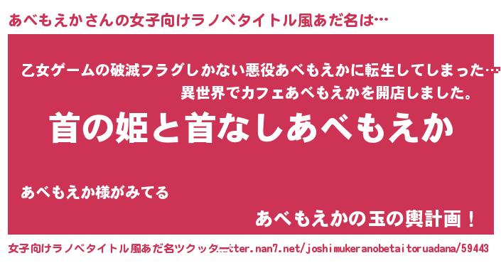 | 意味不明あだ名 | 『住所不定無職あべもえか(43歳)』 |