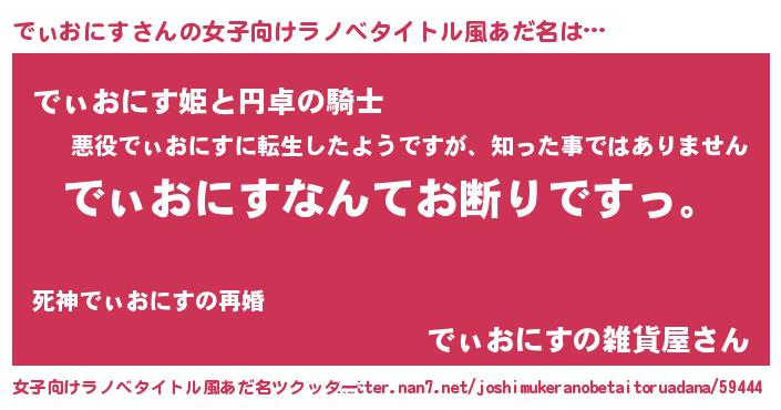 | 男性向けラノベタイトル風あだ名 | 『魔法科高校のでぃおにす』 |