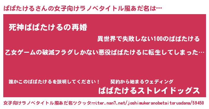 | 意味不明あだ名 | 『住所不定無職ばばたける(13歳)』 |