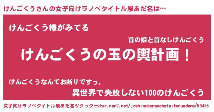 | ヘコむあだ名 | 『けんぷりん』『けんごくう(苦笑)』 |