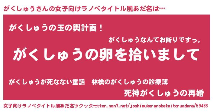 | 恥ずかしいあだ名 | 『ガクリンリン』『ボンバーヘッドがく』 |