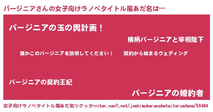 | 男性向けラノベタイトル風あだ名 | 『バージニアアートオンライン』 |