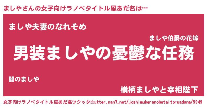 | 男性向けラノベタイトル風あだ名 | 『うちのましやが世界を掌握している!』 |