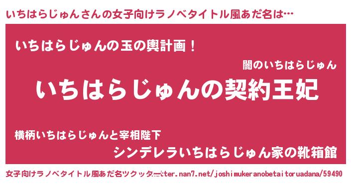 | 男性向けラノベタイトル風あだ名 | 『いちはらじゅんという概念が存在しない退屈な世界 』 |
