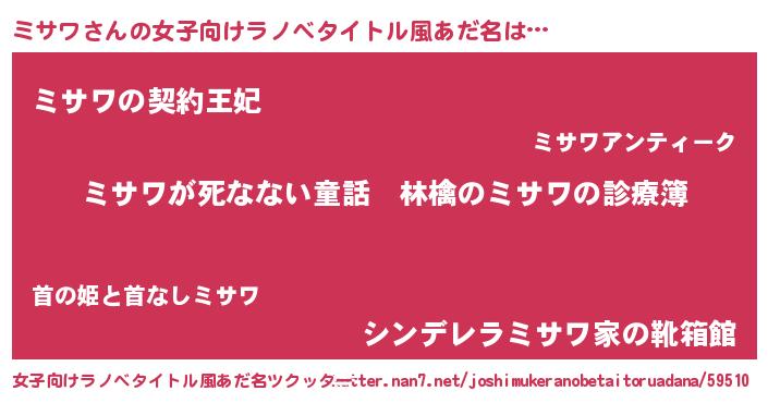 | ヘコむあだ名 | 『ミサワ(小並感)』『ミサふぇ~』 |
