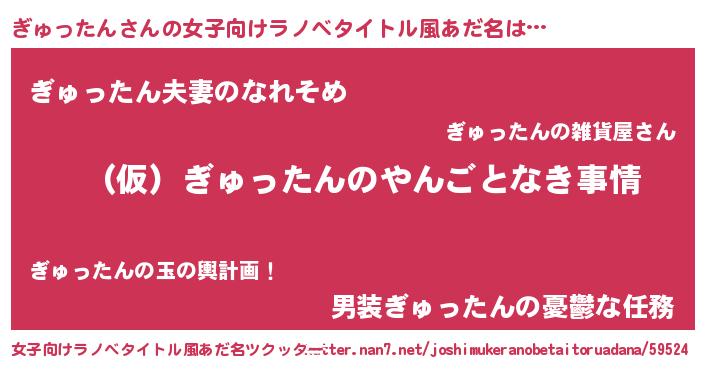 | 胡散臭い通販商品みたいなあだ名 | 『必ず成功する霊験あらたかなお札…その名も「ぎゅったん」』 |