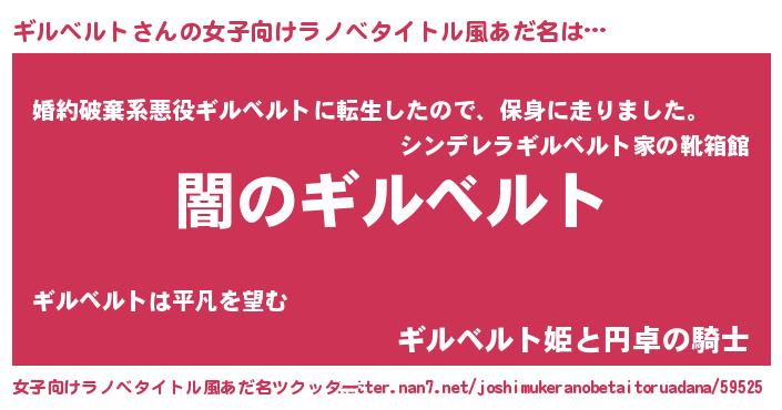 | 男性向けラノベタイトル風あだ名 | 『Re:ギルベルトから始める異世界生活』 |
