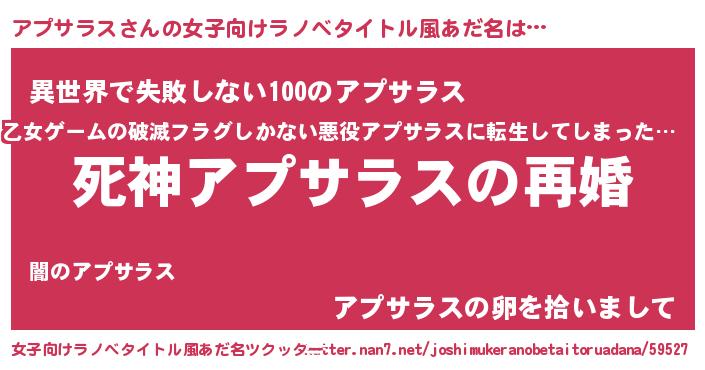 | ヘコむあだ名 | 『アプサラス(笑)』『アプっ子』 |