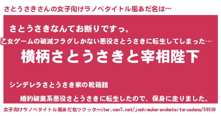 | 男性向けラノベタイトル風あだ名 | 『さとうさきに滅ぼされるだけの簡単なお仕事です』 |