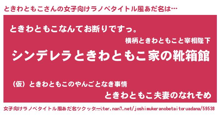 | 意味不明あだ名 | 『自称ときわともこ』 |