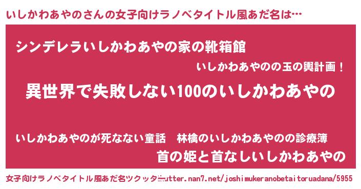 | 意味不明あだ名 | 『永久保存いしかわあやの』 |