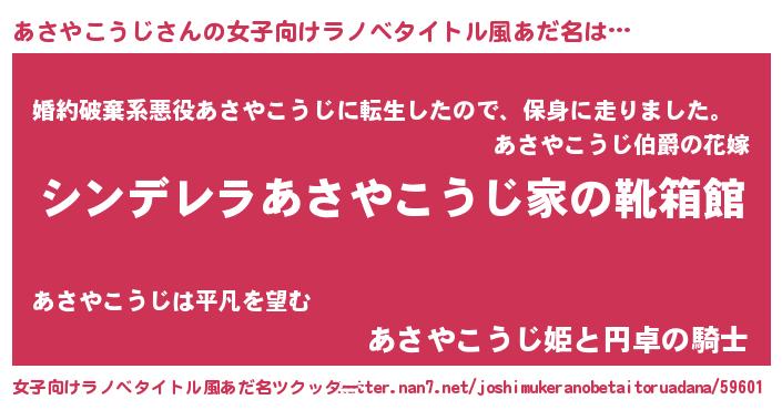 | 男性向けラノベタイトル風あだ名 | 『緋弾のアサヤコウジ』 |