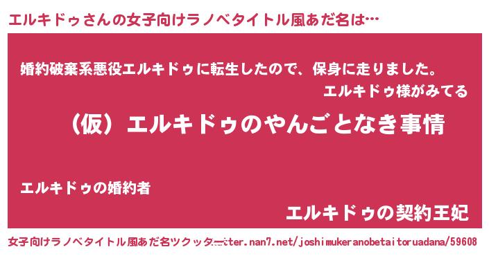 | 男性向けラノベタイトル風あだ名 | 『エルキドゥの憂鬱』 |