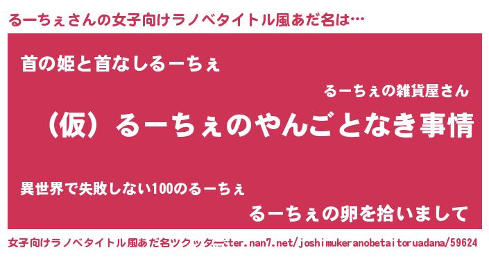 | 男性向けラノベタイトル風あだ名 | 『るーちぇの憂鬱』 |