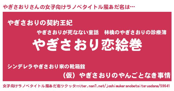 | 意味不明あだ名 | 『眠気覚ましガムやぎさおり味』 |