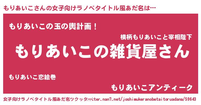 | 男性向けラノベタイトル風あだ名 | 『やはりもりあいこの青春ラブコメはまちがっている 』 |