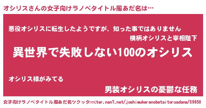 | 男性向けラノベタイトル風あだ名 | 『オシリスという概念が存在しない退屈な世界 』 |