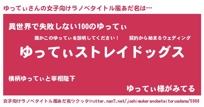 | 意味不明あだ名 | 『自称ゆってぃ』『永久保存ゆってぃ』 |