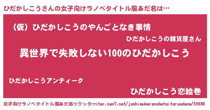 | 男性向けラノベタイトル風あだ名 | 『ひだかしこうという概念が存在しない退屈な世界 』 |