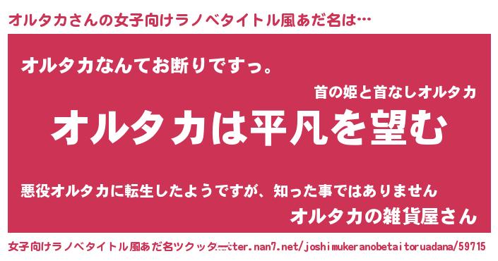 | 胡散臭い通販商品みたいなあだ名 | 『信頼と実績のペンダント…その名も「オルタカ」』 |