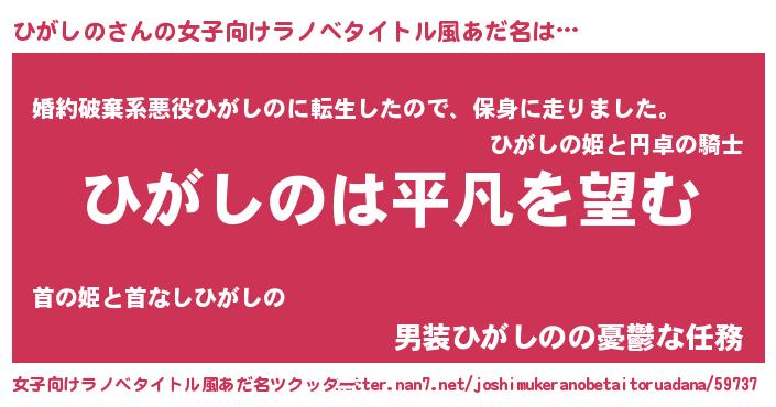 | 男性向けラノベタイトル風あだ名 | 『ダンジョンにひがしのを求めるのは間違っているだろうか』 |