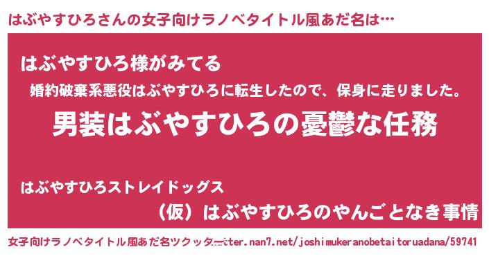 | 男性向けラノベタイトル風あだ名 | 『うちのはぶやすひろが世界を掌握している!』 |