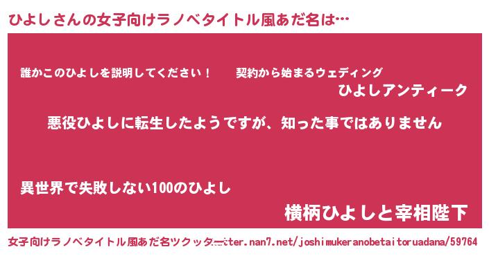 | 意味不明あだ名 | 『住所不定無職ひよし(2歳)』『自称ひよし』 |