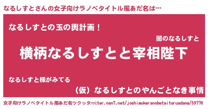 | 男性向けラノベタイトル風あだ名 | 『なるしすとに滅ぼされるだけの簡単なお仕事です』 |