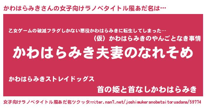 | 男性向けラノベタイトル風あだ名 | 『おまえをオタクにしてやるから、俺をかわはらみきにしてくれ! 』 |