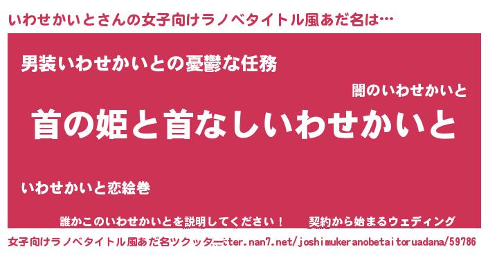 | 胡散臭い通販商品みたいなあだ名 | 『必ず成功するブレスレット…その名も「いわせかいと」』 |